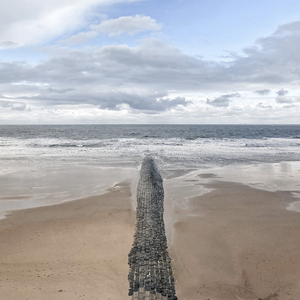 2017de weinig overgebleven strandpalen op het strand van De Haan aan Zee---afwerking op dibond aluminium