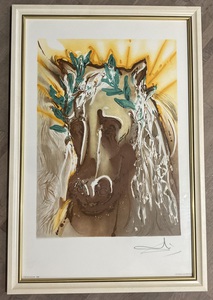 1982Perfekt uitgegeven ( door: Georges Israel Editeur---by S.P.A.D.E.M.in 1983) in de plaat gesigneerde Salvador Dali (1904-1989) ---- litho --- uit zijn paardenreeks : "Les chevaux Daliniens" --- "Le chevalier Chrétien" --- gekocht in 2023. Framed en achter glas;